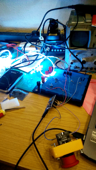 You should be able to see my 3x channels on the blue breadboard, and the LEDs cycling through a test pattern.